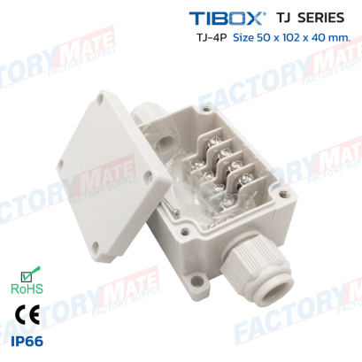 กล่องเทอร์มินอลพลาสติกกันน้ำIP66, TIBOX TJ-4P (ขนาด 50x102x40mm) Plastic Terminal Block Box, 4P 10A