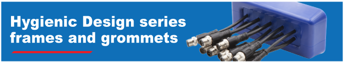 Openable grommets can be freely placed inside the frame. IP66 or NEMA4X degree of protection is achieved with any grommet combination