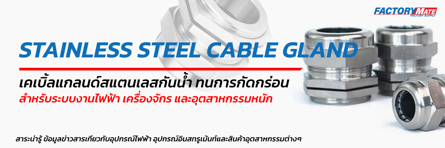 Stainless Steel Cable Gland เคเบิ้ลแกลนด์สแตนเลส อุปกรณ์ที่ใช้สำหรับยึดและปิดผนึกสายไฟหรือสายเคเบิ้ล เพื่อป้องกันไม่ให้ฝุ่น น้ำ หรือสารเคมีต่างๆ เข้าสู่จุดเชื่อมต่อของระบบไฟฟ้า แข็งแรงทานทานสูง ทำจากสแตนเลสเกรด SUS304 มีส่วนผสมโครเมียมอย่างต่ำ 18% ทำให้สร้างชั้นออกไซด์ป้องกันตัวเอง (passivation layer) ซึ่งหยุดการลุกลามของสนิม และ SUS316 ซึ่งเติมโมลิบดีนัม (~23%) ทำให้ทนต่อการกัดกร่อนเฉพาะจุด เช่น สภาวะแวดล้อมเค็มหรือสารเคมีได้ดียิ่งขึ้น สแตนเลสเกรดเหล่านี้ทนต่อกรด-ด่าง, ไอเกลือ, สารละลายเคมี รวมถึงไข, แอลกอฮอล์ และตัวทำละลายทั่วไป