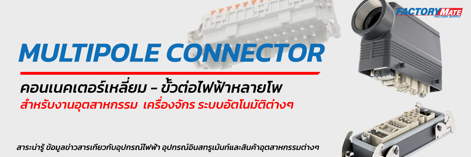 Multi pole Connector เป็น Connector ที่มีจำนวนหลายขั้วซึ่งถูกออกแบบมาใช้กับงานอุตสาหกรรม ทนทานต่อการใช้งานที่สมบุกสมบัน เช่น การสั่นสะเทือนหรือกันน้ำ โดย Connector ประกอบด้วย ตัวผู้ (Male), ตัวเมีย (Female), ฐานยึด (Housing), ฝาครอบ (Hood) และตัวรัดสาย (Cable Gland) ฝั่งตัวผู้และตัวเมีย มีทั้งแบบที่มีตัวผู้ยึดติดกับตู้และนำตัวเมียพร้อมสายไฟ มาเสียบและแบบลอยคือเมื่อจะใช้งานต้องนำทั้งตัวผู้และตัวเมียมาเสียบเข้าด้วยกัน
