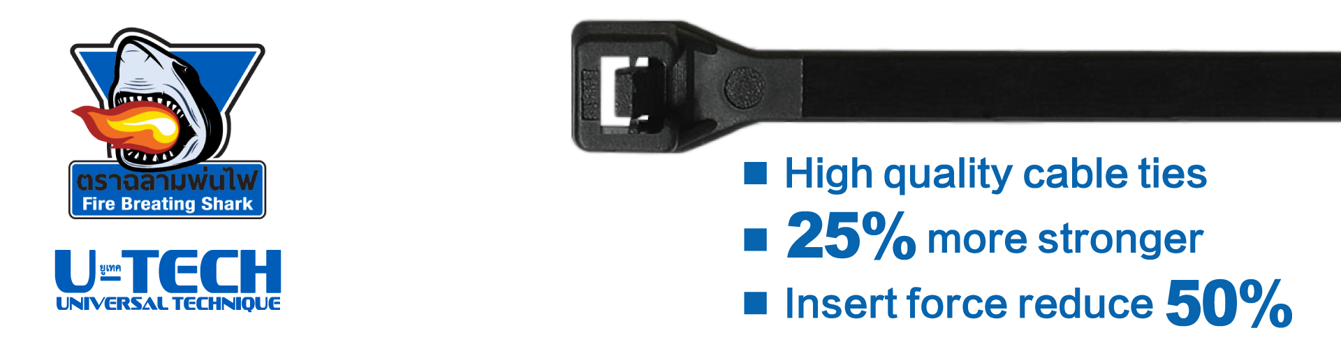 กว่ารุ่นปกติ สายรัดคุณภาพสูง เกรดพรีเมียมทนรังสีUV ใช้งานได้ทั่วไปและงานอุตสาหกรรม เข้าสายง่ายมาก ทนแรงดึงสูง รัดแน่นใช้งานได้ยาวนาน เคเบิ้ลไทตราตลฉลามพ่นไฟ จากU-TECH