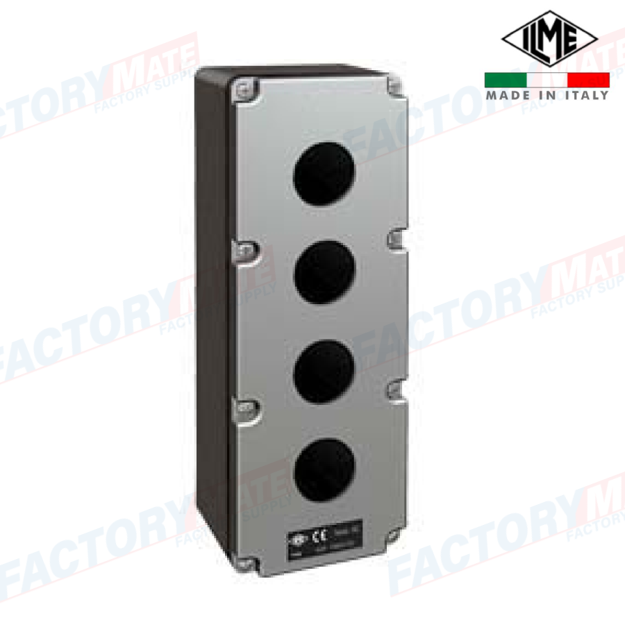 Box for control devices and signals, AC series, Without cable entry, 4 holes for unit Ø 30 mm, External Size 92x257x86 mm.