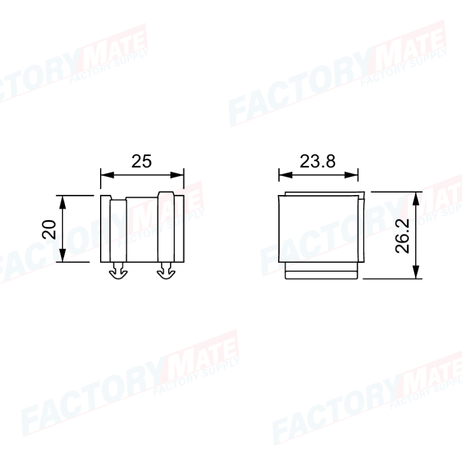 The system patented by Detas allows the grommets (inserts) to be installed in two ways: snap‑on or slide‑on.
