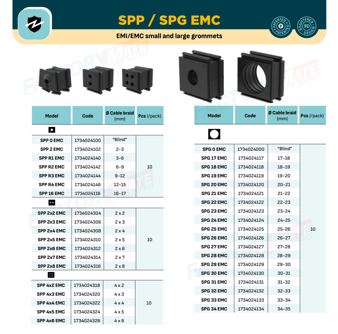 The SPG EMC series grommets allow a range of shielded cables with diameter from 17 to 35 mm o be routed through the DES EMC splitable frames series.