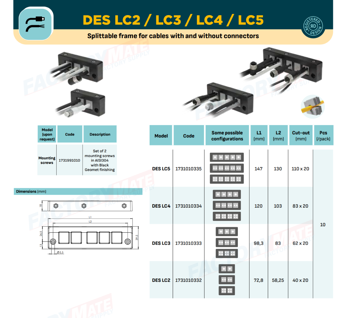The DES LC5 divisible frame is designed to route cables, with or without connectors, with diameters from 2 to 15 mm, using the available SPC grommets.