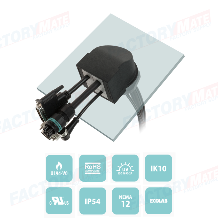 In control cabinets or on automatic machines it is frequently necessary to use pre-terminated cables or, more generally, cables with connectors for sensors or other devices from the machine itself to the I/O distribution systems. Sometime it is also needed to add more cables in the future. Divisible cable glands can be used for these needs. They can be installed in few minutes. The metric hole is drilled quickly with the economical DetasUltra punching machine, equipped with the entire series of punches. The choice of the most suitable grommet, single or multiple or pierceable makes the cable management smart, cost-effective and quick.