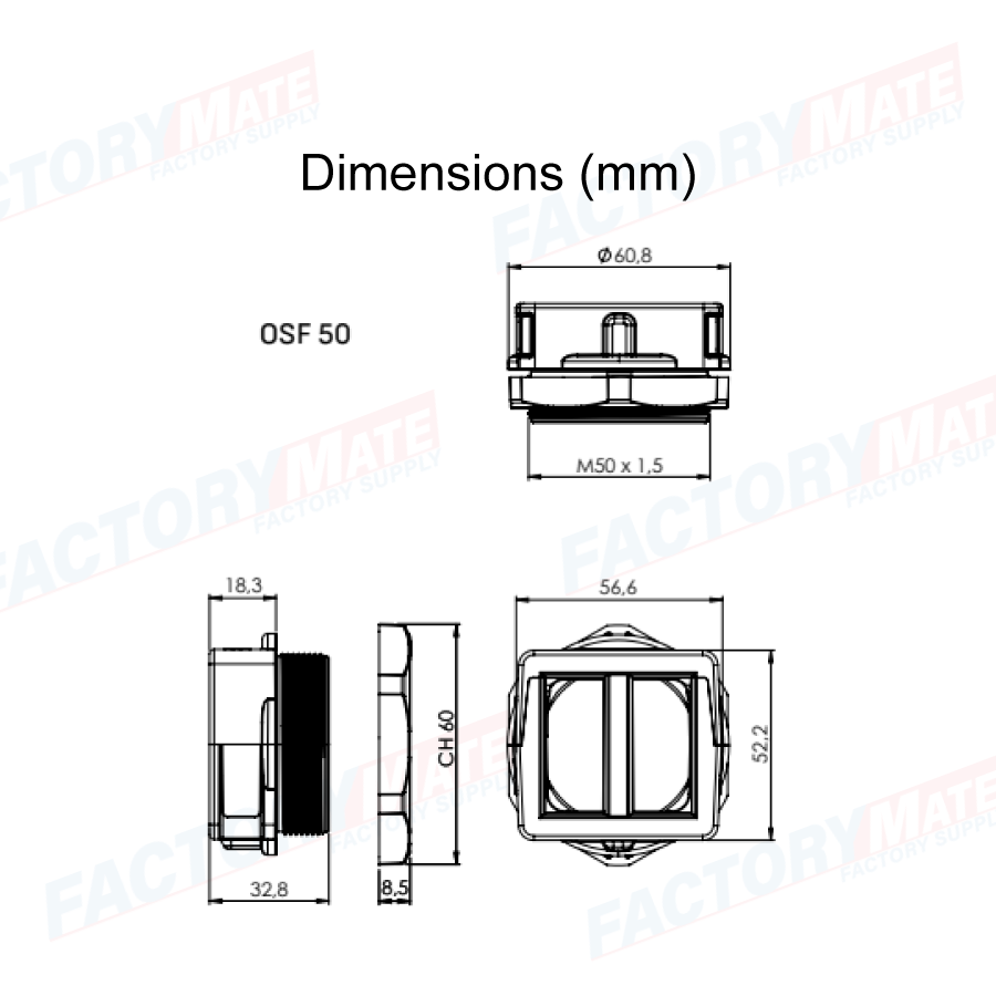 OSF50 and OSF63 divisible cable glands have metric threads and are particularly suitable for use with cables with connectors.