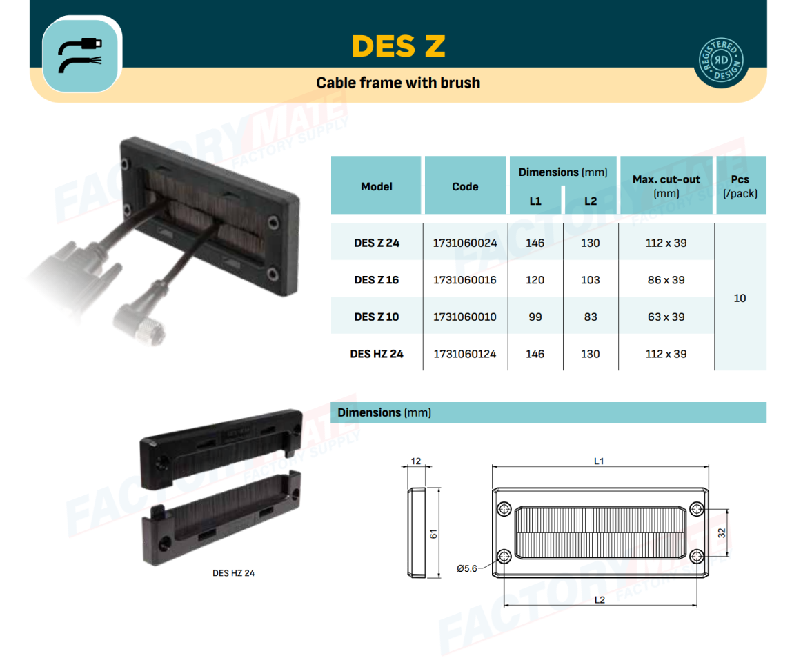 DES Z allows the crossing of cables with and without connectors inside cabinets and switchboards, without the need for strain relief or water protection.
