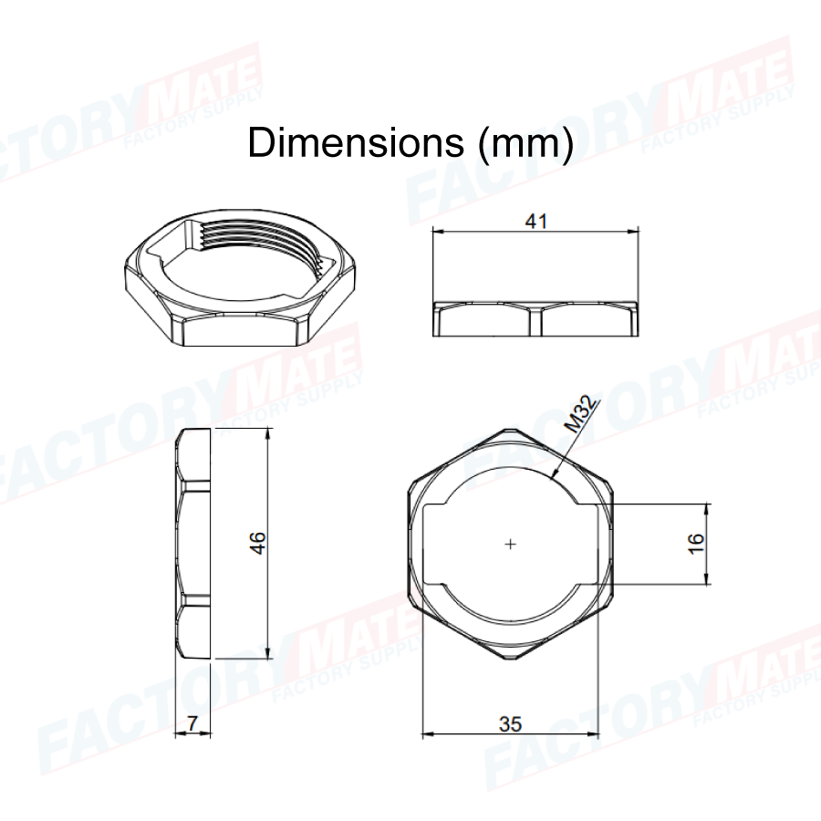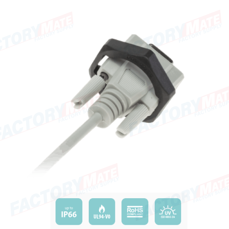 The M32 SUB-D9 locknut allows SUB-D9, DVI or PROFIBUS connector cables to pass through when using an M32 metric cable gland, thus facilitating machinery wiring.